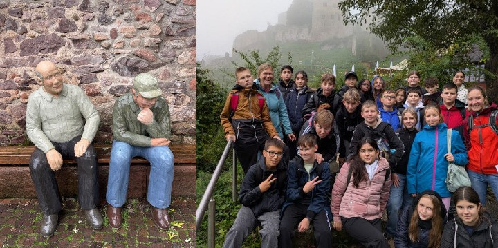 Unterwegs besichtigte die Klasse die Ausstellung "Alltagsmenschen", die sich durch die ganze Innenstadt zog, bevor sie den Aufstieg wagte. Die sagenumwobenen Burgruine begeisterte, allerdings blieb der beeindruckende Blick von oben aufgrund des Nebels verwehrt.
